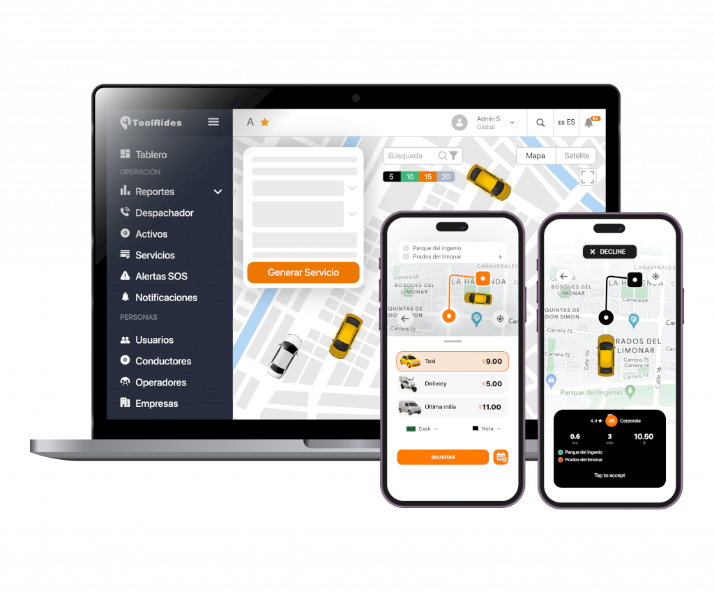ToolRides es un software de despacho y gestión para empresas de transporte, taxis y movilidad que permite digitalizar toda la operación desde un solo sistema. A diferencia de otras plataformas, ToolRides combina panel de control, apps para conductores y pasajeros, y automatización de procesos para ayudarte a escalar tu negocio con orden, control y eficiencia operativa.